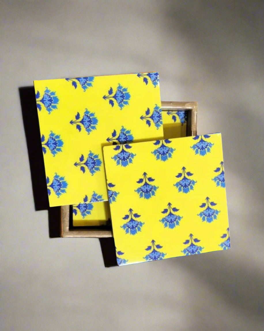 Handcrafted Square MDF Coasters – Set of 6 coasters | Durable & Stylish Drink Coasters | The Yellow Bloom Collection